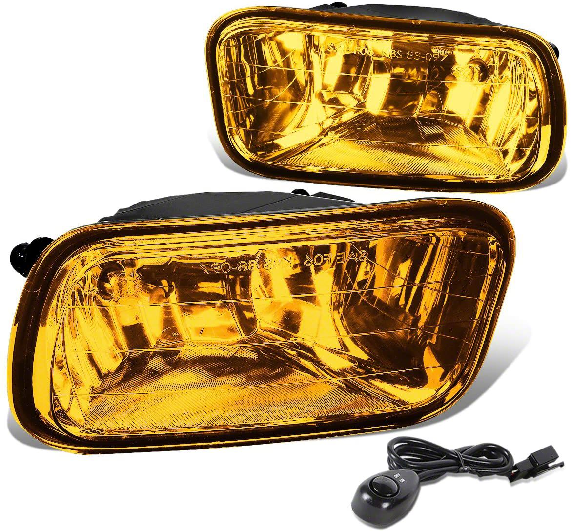 Construction and Appearance. These Fog Lights, sold as a pair for driver and passenger side, have black housings and amber lenses.
