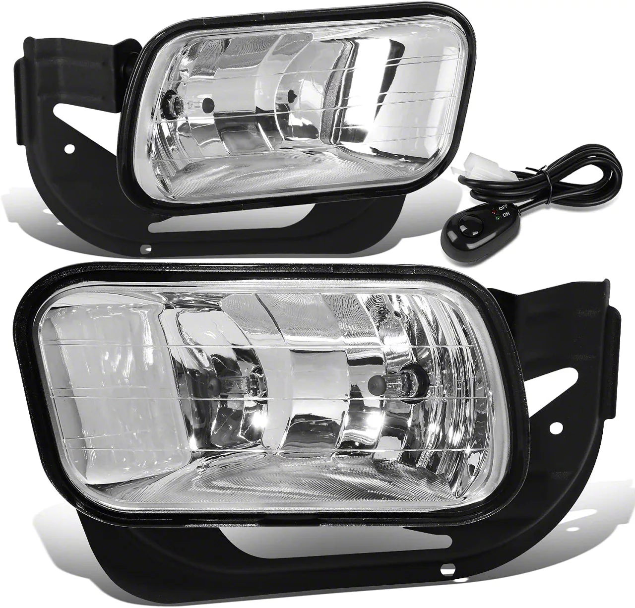 Reliable Replacement. The Fog Lights with Switch is a reliable upgrade to replace your worn-out fog lights. These lights have a clear lens and use an H10 halogen bulb to provide a brighter light output, increasing your visibility in low light conditions.