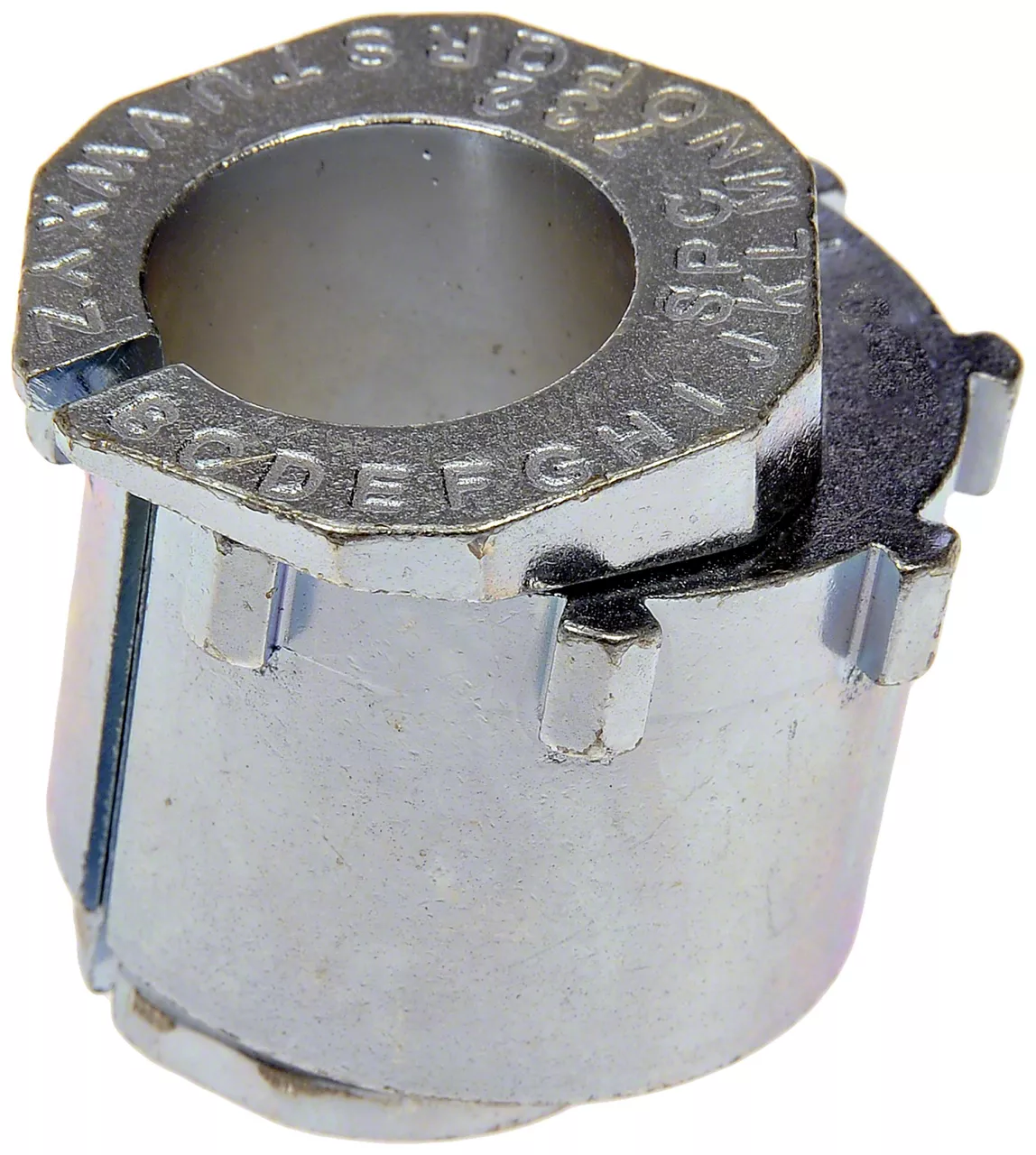 Construction and Appearance. Built from high-quality steel materials, this caster and camber bushing is engineered to withstand harsh road conditions while maintaining structural integrity. It features a corrosion-resistant finish for added durability and a clean, OE-style appearance that blends seamlessly with your suspension components.