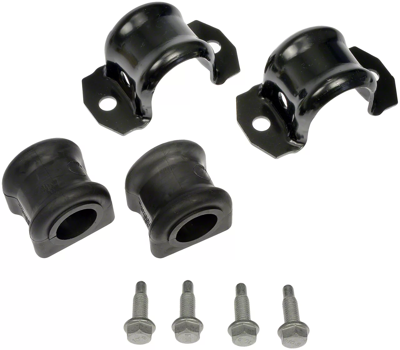 Construction and Appearance. This bracket kit is manufactured using high-quality steel and rubber materials, designed to meet or exceed OEM specifications. The components feature a black finish for a sleek look and enhanced corrosion resistance, ensuring long-lasting reliability. The kit includes a bracket with a 30mm inner diameter, designed to fit seamlessly onto the stabilizer bar.
