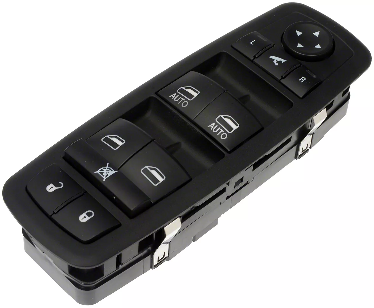 Construction and Features. Featuring a durable matte black finish, this window switch is built to match your vehicle's factory specifications. The 11-button layout includes controls for one-touch up and down windows as well as power folding mirrors, offering seamless functionality and ease of use.