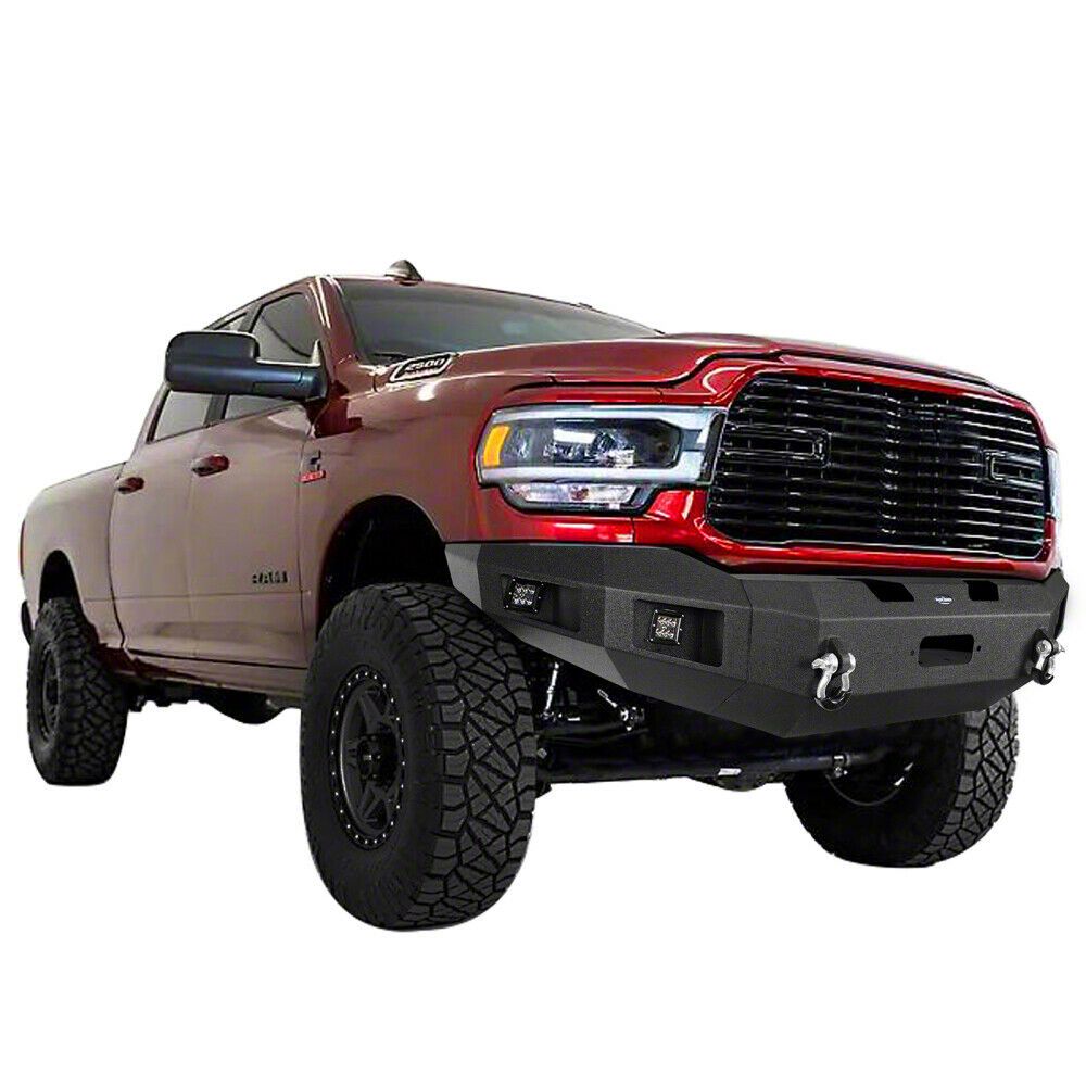 Application. The Full Width Front Bumper with Winch Plate, LED Spotlights and D-Rings fits 2019-2026 RAM 2500 Models.