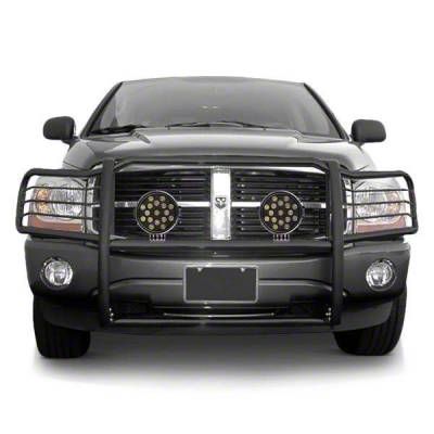 Application. The Grille Guard with 7-Inch Round LED Lights; Black fits 2003-2005 RAM 2500 models.
