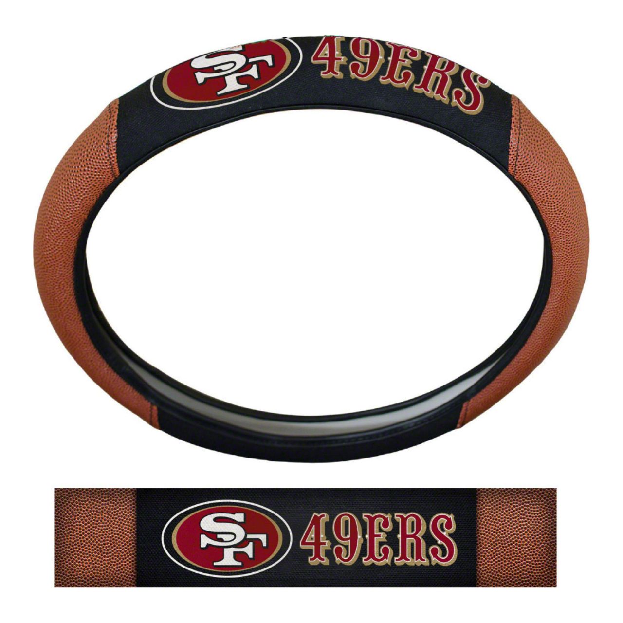 Grip Steering Wheel Cover with San Francisco 49ers Logo; Tan and Black (Universal; Some Adaptation May Be Required)
