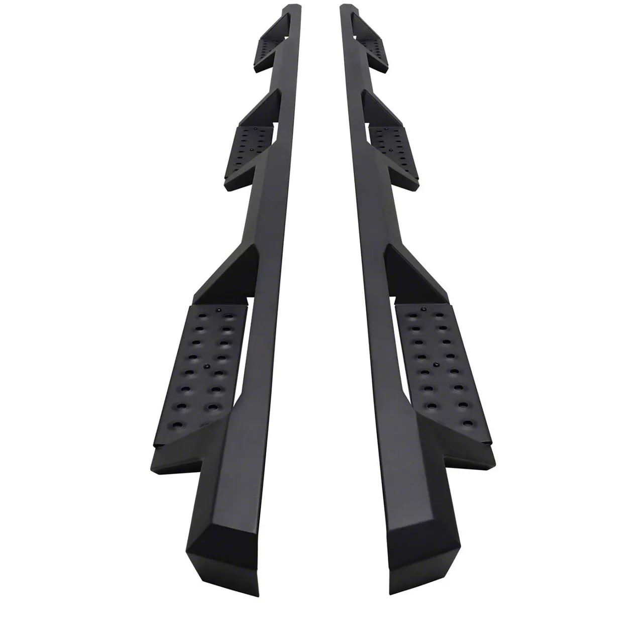 High-Grade Construction. These WTW Side Step Bars are manufactured from a solid, 1-piece steel and finished with textured black powder-coat for great rust and corrosion resistance. The die-stamped steel step areas are great for traction even with rain or snow. The step plate is also removable so you can easily clean it before any dirt or grime eat up the finish and cause damage. The side step bars are also made to be UV-resistant and include grooves to drain water or moisture off the step.