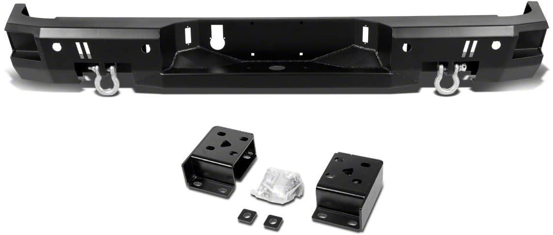 Tough Rear Armor. Equip your RAM with a reliable rear armor by replacing your stock bumper with this Heavy-Duty Rear Bumper; Pre-Drilled for Backup Sensors. This rear bumper extends the utility of your off-road shield with corner step pads, dual D-Ring shackles and pre-drilled for backup sensors. Using this bumper will give your truck improved rear protection and enhanced off-road capability.