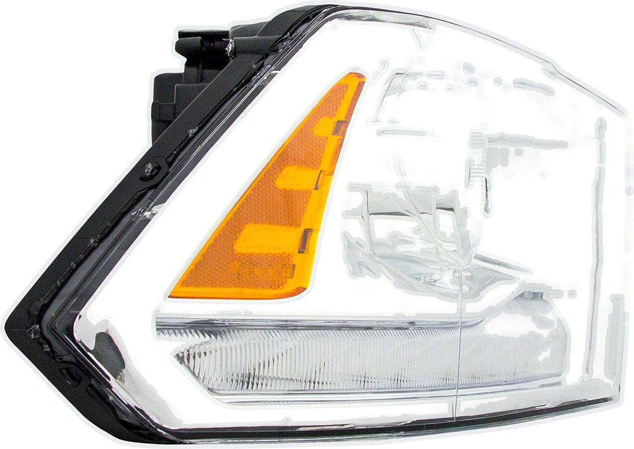Construction and Appearance. Featuring a durable chrome housing and clear lens, the headlight blends seamlessly with the vehicle's OEM styling. Built to accommodate the original HID bulbs and ballasts, it delivers reliable light output and proper beam alignment. The unit is DOT and SAE compliant, meeting all safety and regulatory standards for road use.
