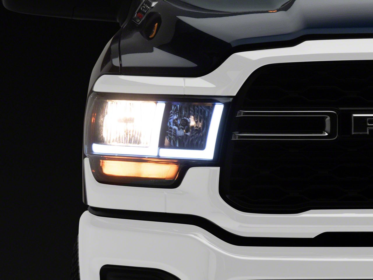Application. The LED Bar Factory Style Headlights; Black Housing; Clear Lens fits all 2019-2024 Dodge RAM 2500 models with Factory Halogen Headlights.