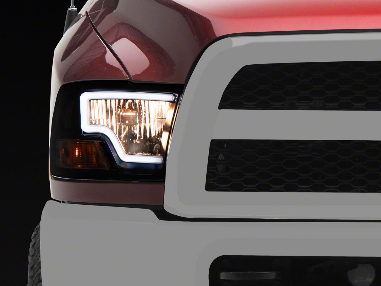 Application. These LED DRL Bar Headlights; Black Housing; Clear Lens are designed to fit 2010-2018 RAM 2500 models without Projector Headlights. Driver and passenger side lights are included.