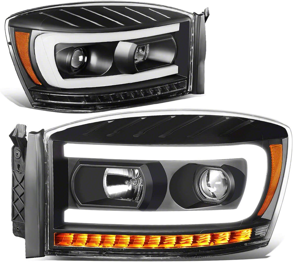 Application. These LED DRL Projector Headlights with Amber Corner Lights; Black Housing; Clear Lens fit 2006-2009 RAM 2500s.