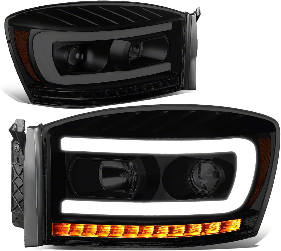 Application. These LED DRL Projector Headlights with Amber Corner Lights; Black Housing; Smoked Lens fit 2006-2009 RAM 2500s.