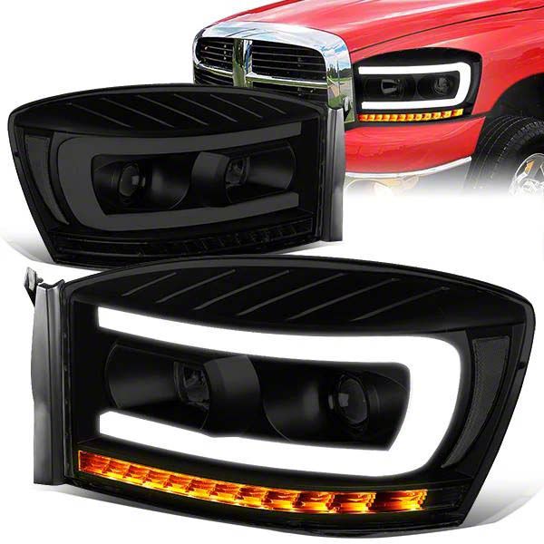 Application. The LED DRL Sequential Projector Headlights with Black Housing and Smoked Lens fit 2006-2009 RAM 2500 models.