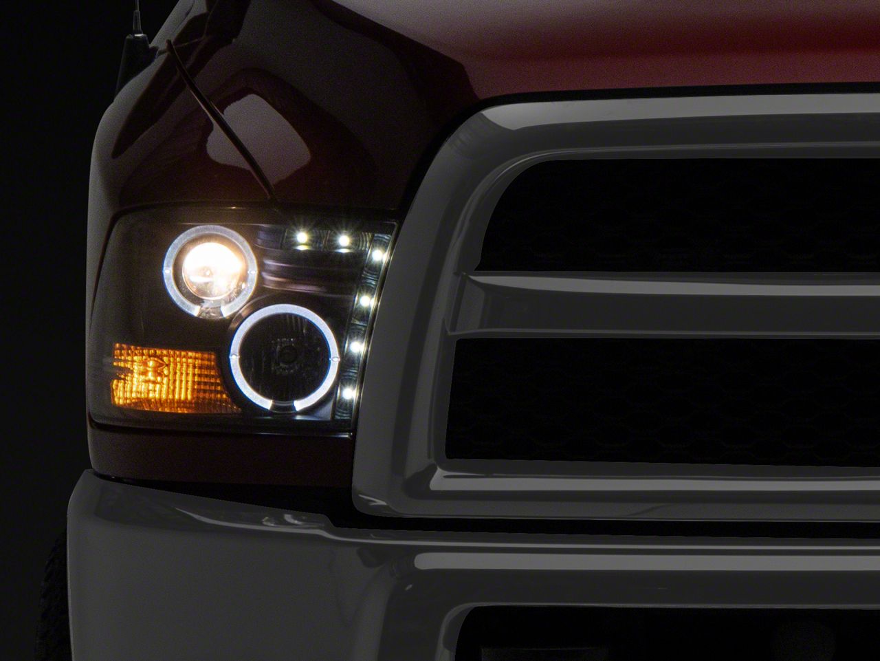 Bulb Application. The Ram 2500 LED Halo Projector Headlights weren’t designed as a direct replacement part. As such, they’re not compatible with a factory projector and LED DRL.