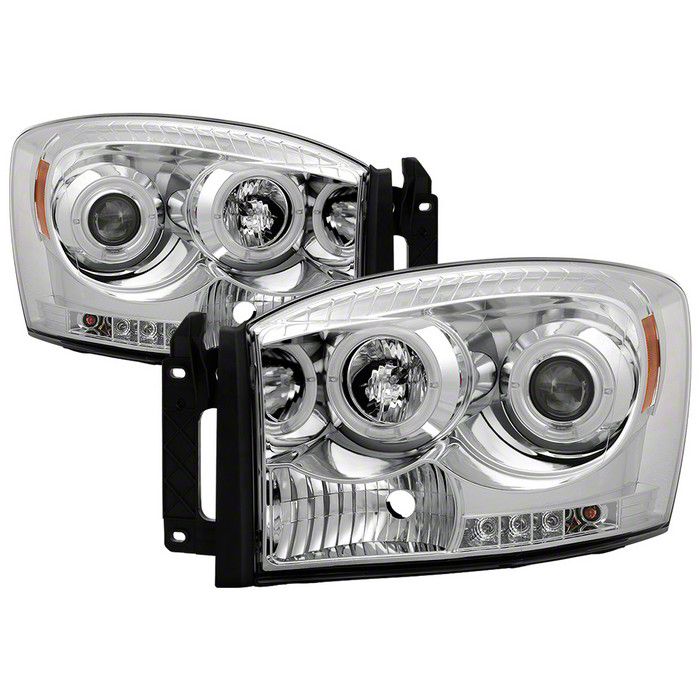 LED Halo Projector Headlights; Chrome Housing; Clear Lens (06-09 RAM 2500)Find parts that fit my vehicle