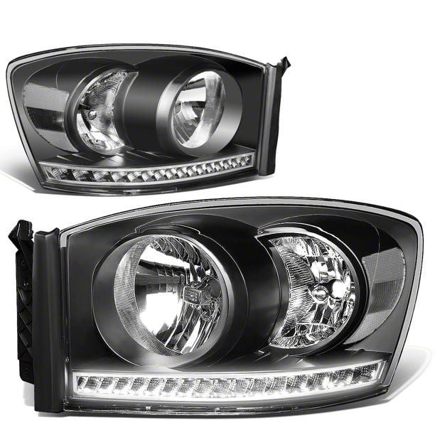 Application. The LED Strip DRL Headlights; Black Housing; Clear Lens fits 2006-2009 RAM 2500 Models.