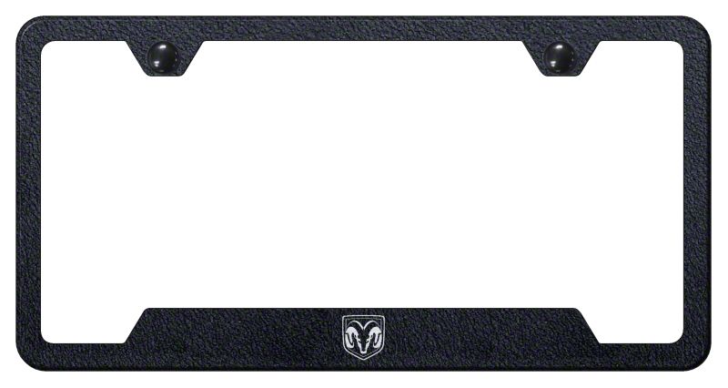 Customize Your License Plate. A great way to personalize your vehicle’s appearance is with a custom license plate frame. The RAM Head Laser Etched Cut-Out License Plate Frame will do just that. This frame has a laser-etched RAM head at the bottom and a notched design. The open corners are wide enough for state registration stickers.