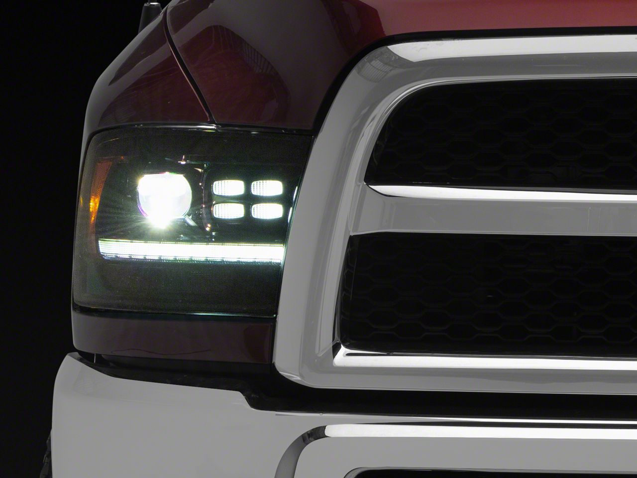 Application. These LUXX-Series LED Projector Headlights; Alpha Black; Clear Lens are intended for use on all 2010-2018 RAM 2500 models without projector headlights.