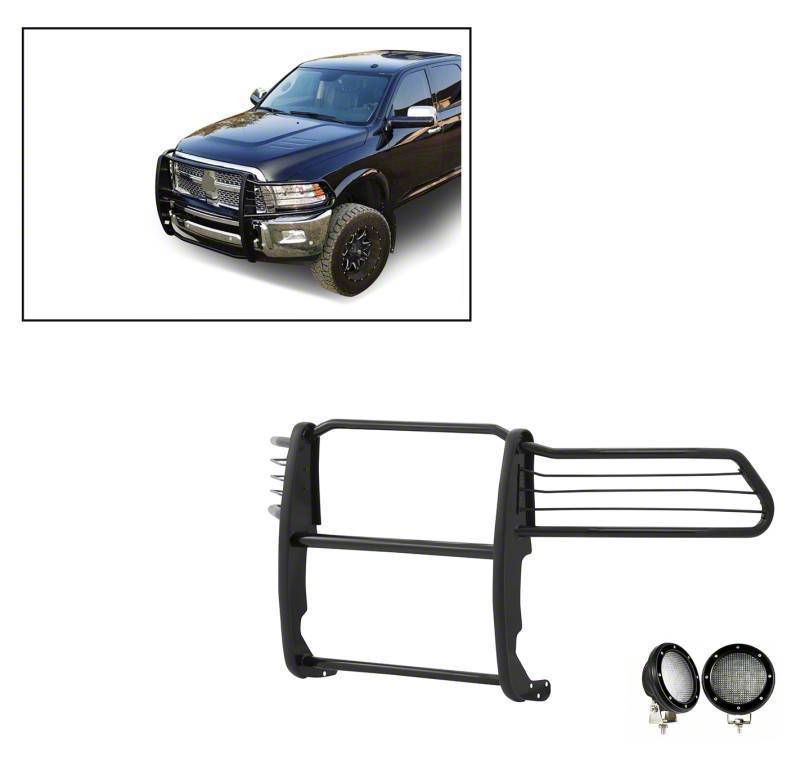 Application. This Modular Grille Guard with 5.30-Inch Black Round Flood LED Lights fits 2010-2018 RAM 2500 models.