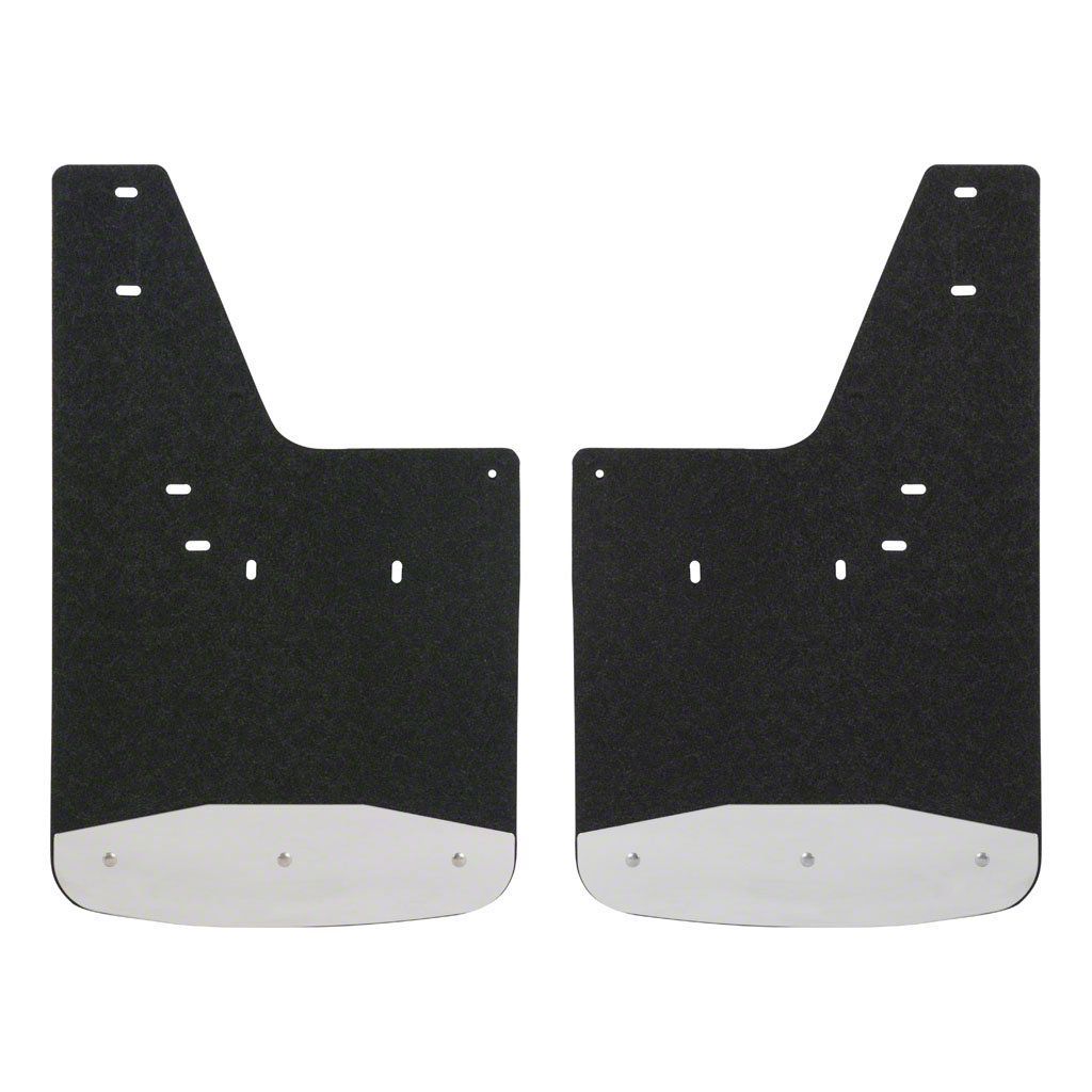 Eco-Friendly Recycled Rubber. These Textured Rubber Rear Mud Guards are made using eco-friendly recycled rubber material. Not only are you protecting your truck’s body, you’re also giving Mother Nature a chance to recover. These mud guards are 3/8-inch thick, enough to stand up to heavy abrasions, but still have enough flex in them. They also have polished stainless steel plates at the bottom for added durability and good looks.