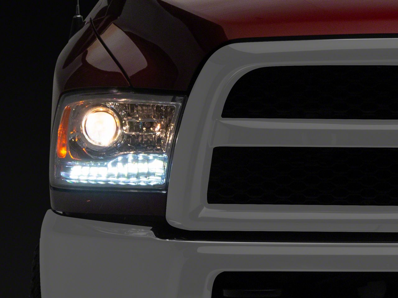OE Style Plank Style Switchback Halo Projector Headlights; Chrome Housing; Clear Lens (10-18 RAM 2500 w/ Factory Halogen Non-Projector Headlights)Find parts that fit my vehicle