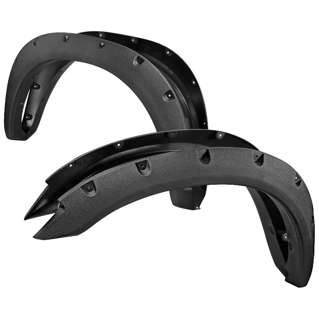 Stock-Heavy Construction. Each Rivet Style Fender Flare is comprised of high-density compact polypropylene synthetics for long-lasting toughness and weather resistance. It is injection-molded in a textured black design, but it's completely customizable.