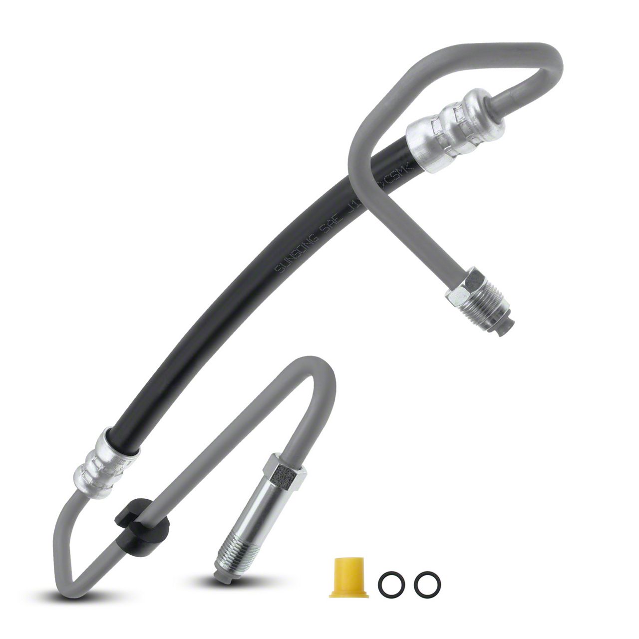 Construction and Durability. Constructed from durable, reinforced material, this high-pressure hose is designed to resist heat and pressure, maintaining strength under demanding conditions. The corrosion-resistant coating and leak-proof connections ensure long-lasting durability and consistent steering response.
