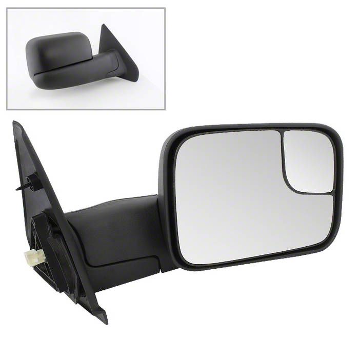 Innovative Power Mirror. Driving in extreme conditions requires the safety that this Passenger Side Powered Heated Manual Extended Mirror delivers. Apart from its aerodynamic quality and tough character, this side mirror also has innovative features that make driving in treacherous conditions more bearable such a powered glass mirror, a manually extendable length, and a flip-up design. And with its smooth design, this side mirror adds an impressive quality to the way your RAM 2500 looks.