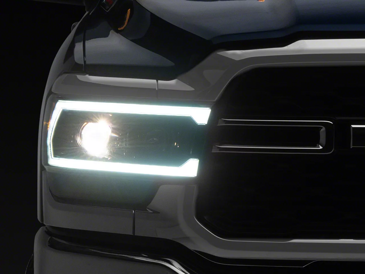 Application. The PRO-Series Projector Headlights; Alpha Black Housing; Clear Lens fits all 2019-2024 RAM 2500 w/ Factory Halogen Headlights models