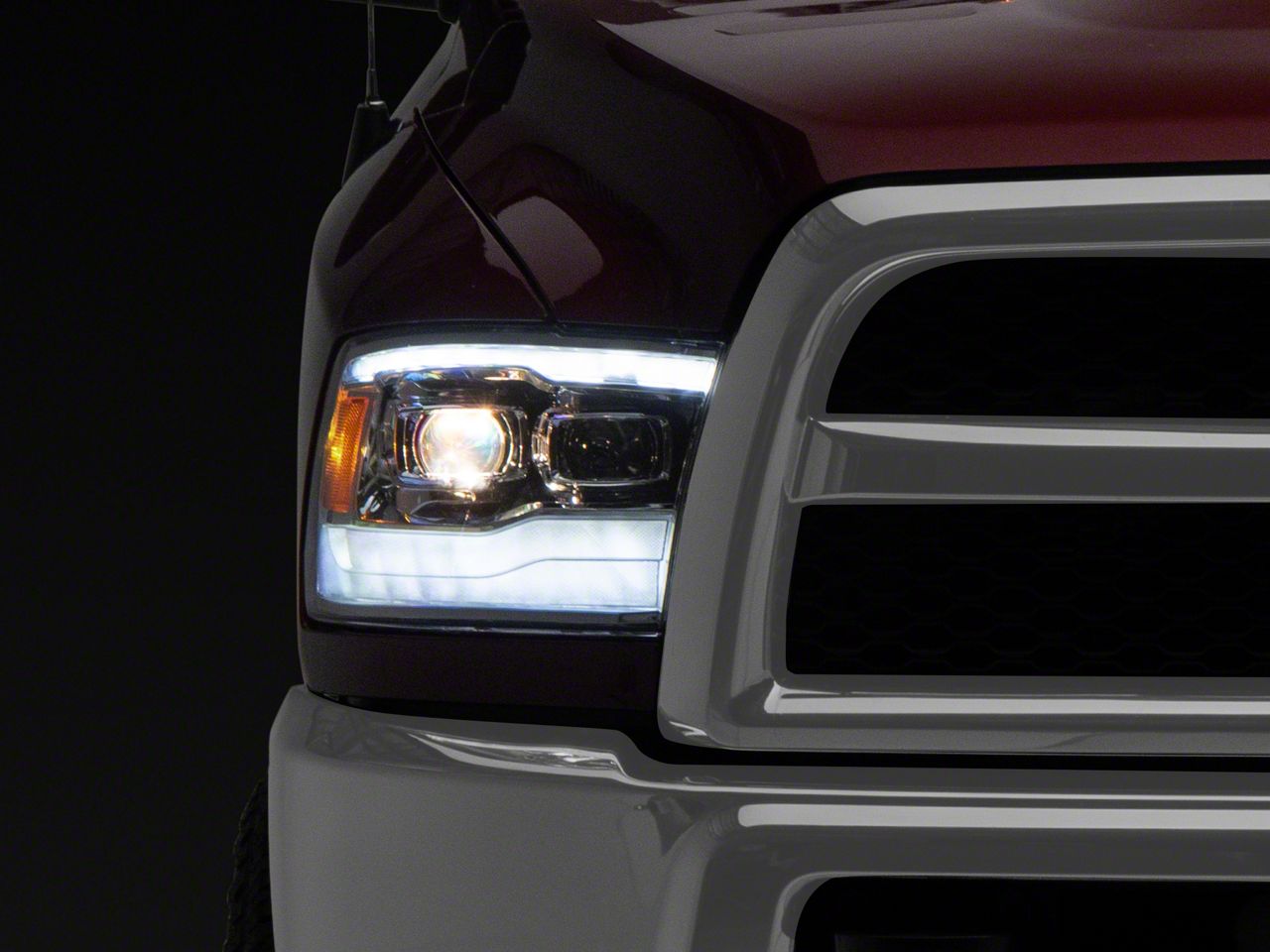 Modern Appearance. These PRO-Series headlights will surely bring your RAM into the current generation, featuring modern, fifth-gen RAM-inspired styling, dual projectors, a satin black housing, futuristic LED running lights, and sequential turn signal strips. Not only are these headlights a terrific upgrade for visibility, but they’re a worthwhile stylistic upgrade, vastly improving the exterior appearance of your RAM.