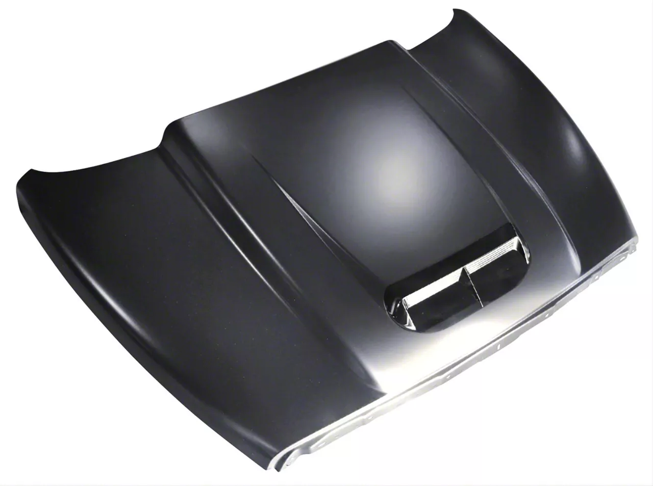 Raised Scoop Feature. This hood is designed in the style of a ram air hood, featuring a raised scoop at the front of the hood that draws in cool air from outside the engine bay. This cool air is then directed into the engine, providing improved airflow and increased performance.