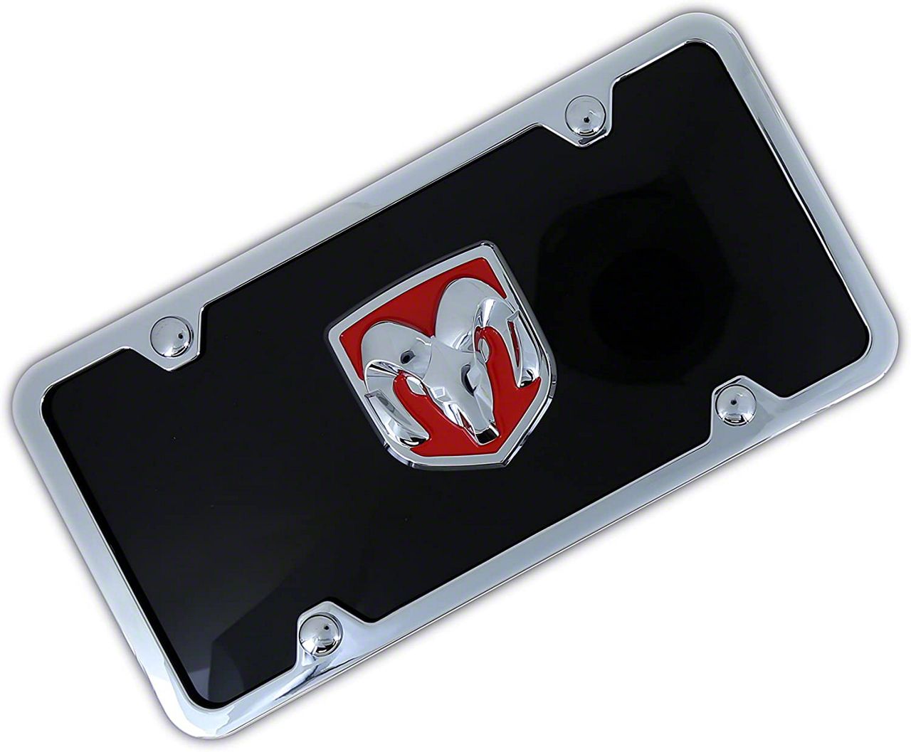 Quality-Brand Recognition. Complete the brand-new look of your RAM 2500 by mounting this RAM Red/Chrome on Black License Plate on your bumper. This license plate features a distinctive design with a stylish outline that adds a touch of fierceness to this captivating accent. It also works perfectly well with any style of your chosen custom bumper.