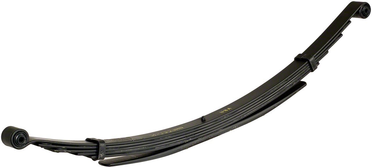 Construction and Appearance. This spring features a multi-leaf design that evenly distributes weight and enhances rear suspension support. It's finished with a corrosion-resistant coating to protect against rust and weather damage, while maintaining an OEM-style appearance and fit.