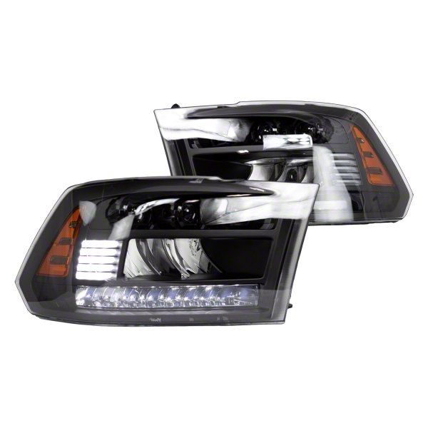 Osram Oslon Chips with Regulation Compliance. Equipped with high-quality Osram Oslon matte black LED chips, these headlights are engineered to prevent error codes and hyperflashing, ensuring a seamless integration with your vehicle's electrical system. The incorporation of daytime running lights adds an extra layer of safety, making your vehicle more visible to other road users during the day. Manufactured by an ISO-certified company and compliant with DOT and SAE standards, these headlights are sealed with butyl to guard against housing ingress imperfections, offering durability and reliability. This pair of direct replacement headlights is designed to fit perfectly, providing a regulation-compliant upgrade that enhances both the function and form of your RAM 2500.