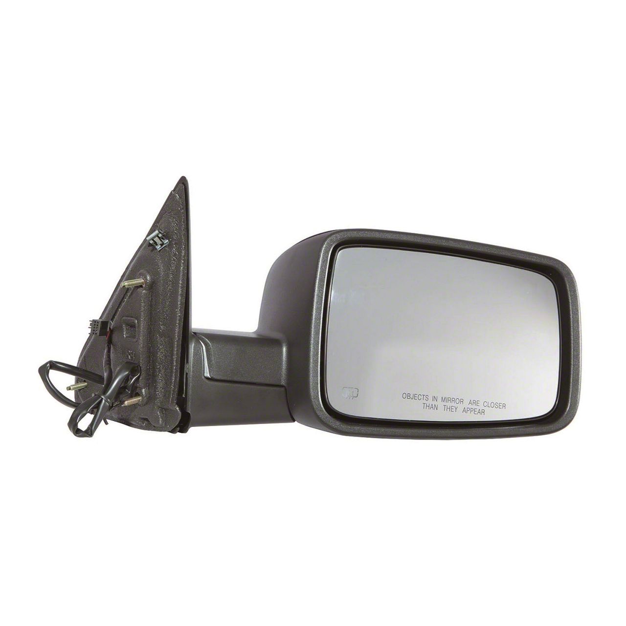 Durable. The textured black finish of the Replacement Powered Heated Mirror adds a sleek, modern look to your vehicle. This isn't just about aesthetics; the finish offers added durability and resistance to the elements. The texture helps mask minor scratches and dings that are inevitable over time, maintaining a cleaner and more consistent appearance. Additionally, this robust finish offers a layer of protection against various weather elements, such as rain, snow, and even the sun's UV rays. Road debris, which can often lead to scrapes and scratches, is less visible and damaging due to this protective coating. This finish ensures that the mirror retains its quality look and feel for a longer period, contributing to the overall value and appeal of your vehicle.
