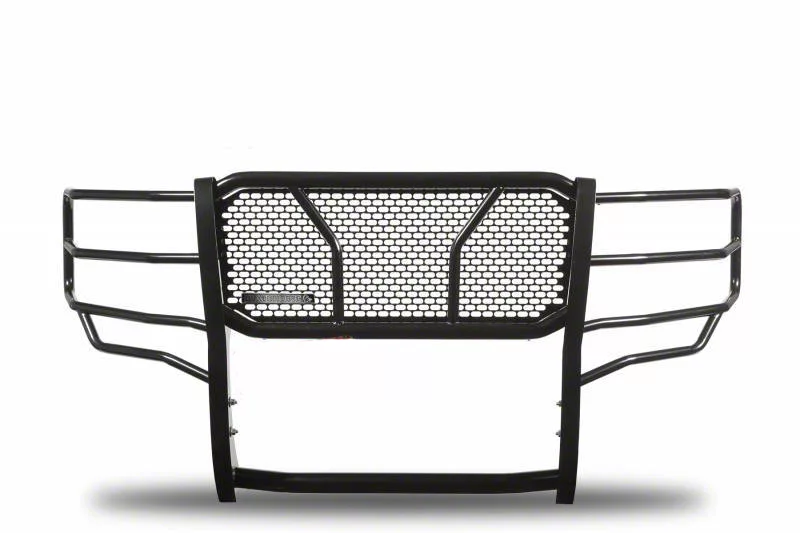 Robust Build Quality. This grille guard features high-grade steel construction, ensuring superior strength and durability. This front-end protector combines a tubular steel main body and brush-guard sections with a heavy-gauge steel plate support frame and punch-plate grille. The result is an assembly that offers exceptional sturdiness as well as great looks. Finally, the whole assembly receives a tough black powder-coat finish for exceptional rust protection.