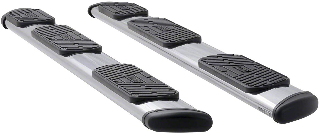 Construction and Appearance. Crafted from durable stainless steel, these step bars feature a polished finish that not only adds sleek shine but also resists corrosion for long-lasting visual appeal. Their oval 7-inch design provides wide, reliable footing and a rugged presence that complements your truck’s bold look. Built for strength and performance, the wheel-to-wheel model extends full-length coverage for extra utility and style.
