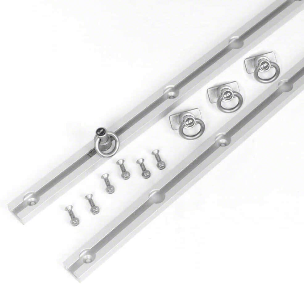Secure Your Cargo. Experience hassle-free cargo management with the Slide-N-Lock Tie Down System. This 93-inch long system finished with a clear anodized coating, offers a secure and adjustable solution for tying down your cargo. Whether you're transporting gear for a weekend adventure or moving heavy loads, the Slide-N-Lock system provides versatile and reliable tie-down options.