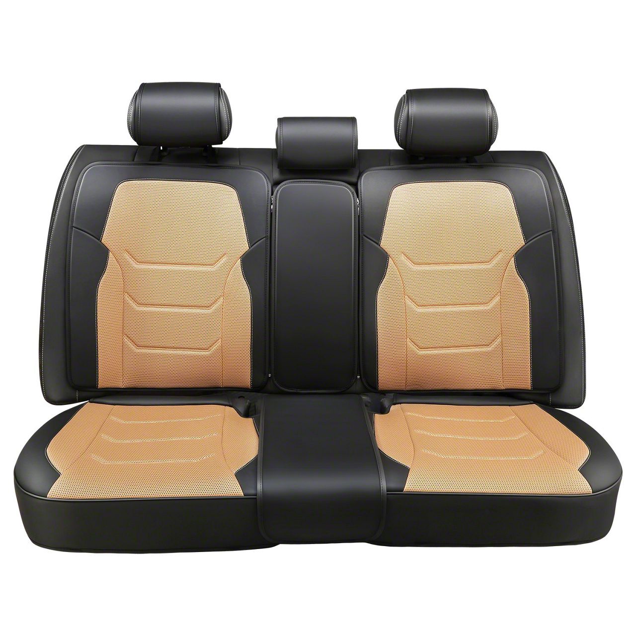 Everyday Protection and Comfort. The Sport Series Front and Rear Seat Covers offer a practical and stylish way to protect your vehicle's interior from daily damage, spills, and UV exposure. Featuring a sporty beige and black two-tone design, these seat covers are constructed from durable, water-resistant neoprene that's perfect for active lifestyles, families, or frequent commuters. The Sport Series Front and Rear Seat Covers provide a clean, custom-inspired look while enhancing long-term interior durability.