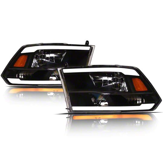Highlight Your Headlights. Giver your RAM a Euro-style custom upgrade with the SQ Series Headlights with Sequential Turn Signals in Black Housing and Clear Lens. This pair of Crystal Euro-Style halogen headlights feature a start-up sequence for an interesting look when getting into your truck and sequential LED turn signal lights that are hard to miss with their ultra-bright illumination.