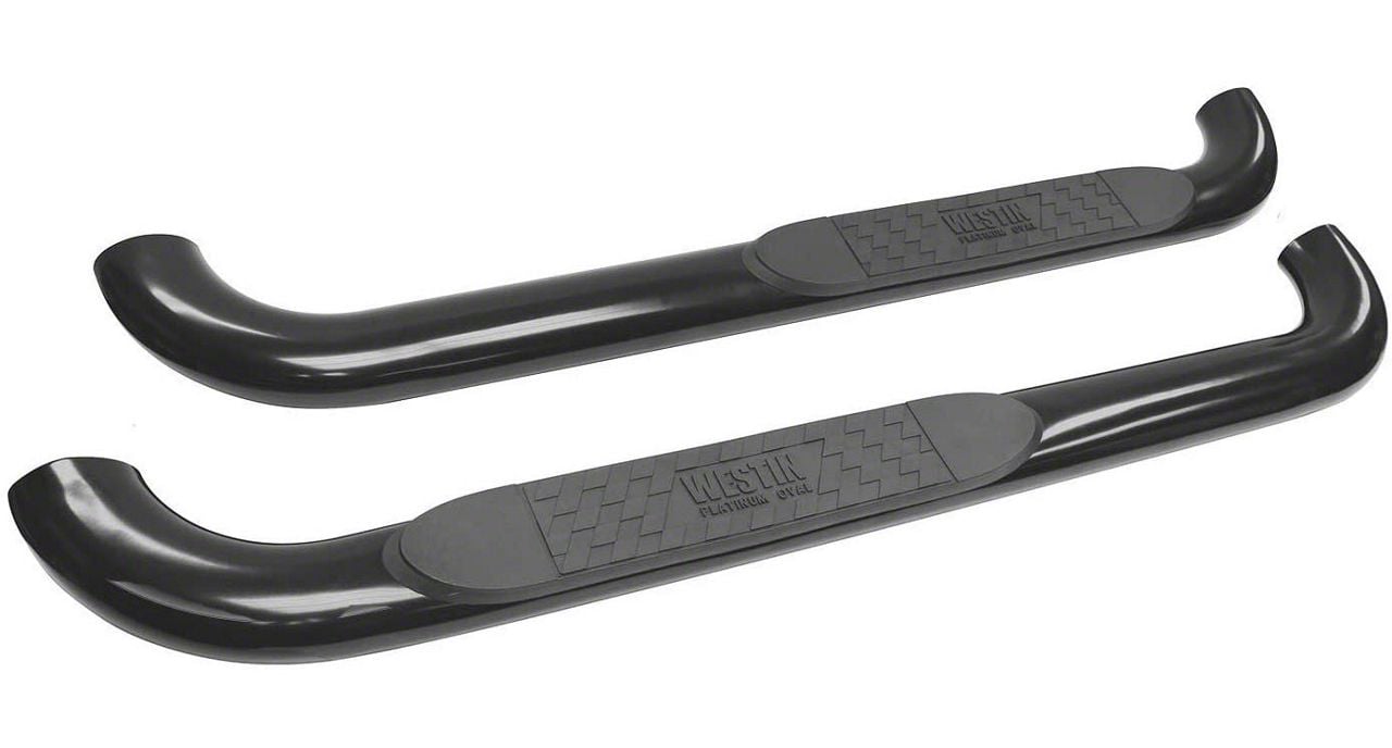 Description. Step Nerf Bar; Platinum 4 Oval Nerf Step Bars; Black; Steel; Mount Kit Included; Body Mount;