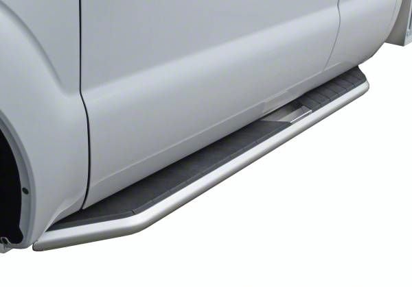 Enter and Exit your Truck with Ease. Step into and out of your truck in style with these RAM Running Boards. They are 4.5 inches wide and have a 2-inch backsplash. Also, the Running Boards include an attractive stainless steel centerpiece. The running boards include strong molded step pads. Plus, they are CAD-designed. Please note: fits Crew Cab models.