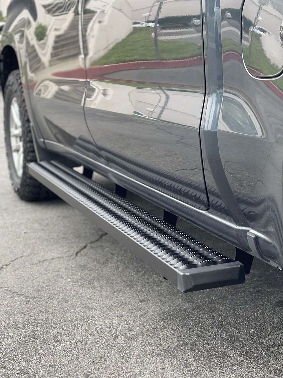 Highlights include lightweight aluminum construction, 7” step surface, E-coat and Powder coat textured black finish, elevating both the style and longevity of your truck, Reverse punch tread design for maximum footing, Limited lifetime warranty.