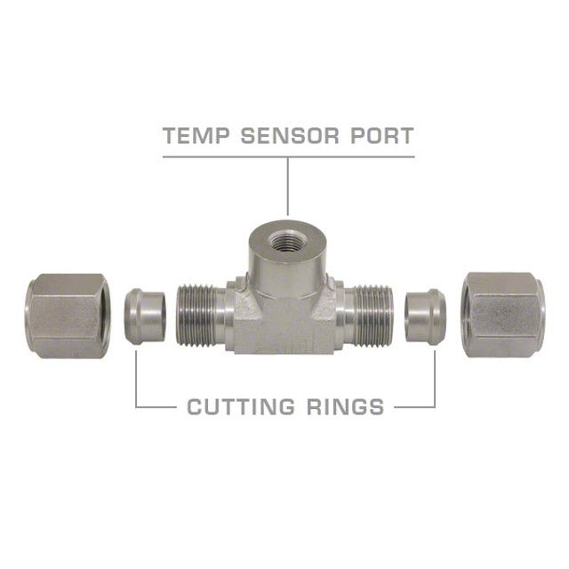 GlowShift Dodge Ram Cummins Transmission Line T-Fitting Adapters give you the ability to install a 1/8-27 NPT transmission temperature sensor directly to the 1/2” transmission cooler feed line for extremely accurate readings. This Dodge Ram Cummins Transmission Cooler Line Adapter includes (1) T-Fitting Housing with a 1/8-27 NPT port, (2) Compression Nuts and (2) Cutting Rings that ensure a tight, leak free seal. Each T-fitting Cummins adapter is crafted from premium quality carbon steel to prevent rust over longtime use.
