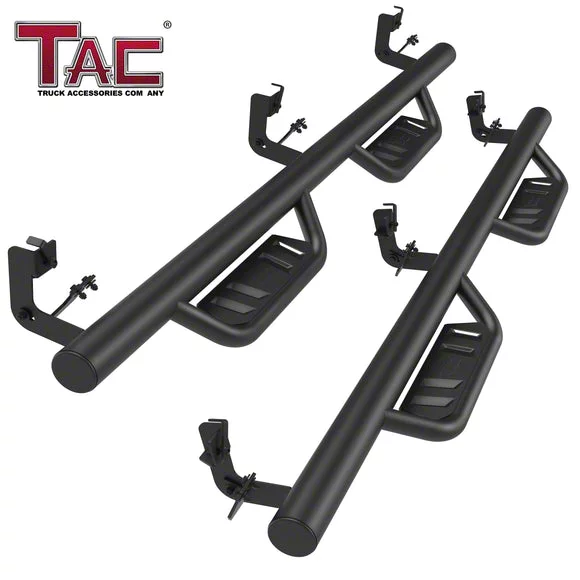 Stylish and Functional Step Bars. These Tubular Style Drop Side Step Bars are the perfect combination of functionality and style. Designed with drop steps, they provide easy access to your truck's cab while offering rugged good looks. The heavy-duty construction ensures durability and long-lasting performance for everyday use.