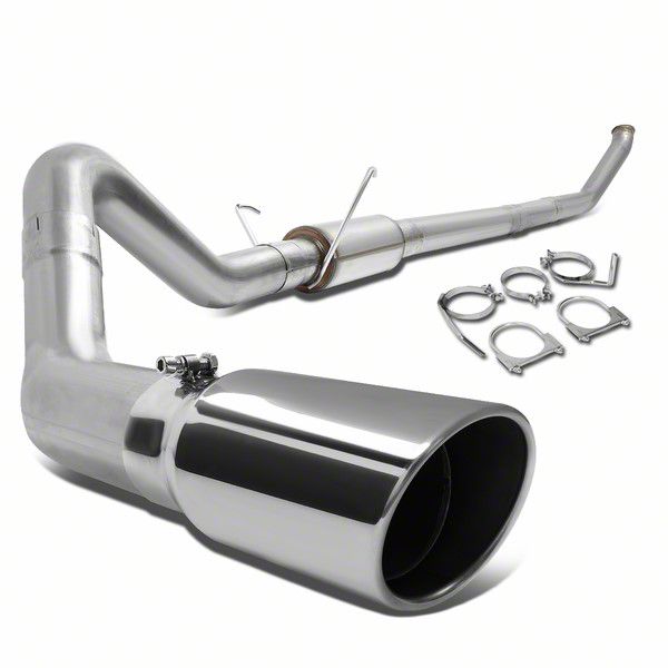 Mandrel-Bent Steel Construction. This exhaust system is manufactured from 4-inch outer diameter mandrel-bent steel. It’s finished with an aluminized coat for robust protection against rust and corrosion. What’s more, it displays a polished round tip for extra appeal on your truck’s rear.