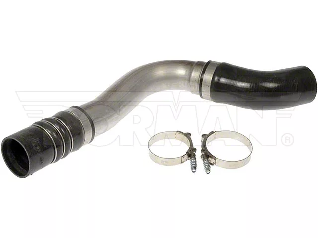 High-Temp Intercooler Hose Replacement. The Turbocharger Intercooler Inlet Duct is a direct-fit replacement designed to restore lost boost pressure and performance due to worn or damaged factory components. Built for the hot side of the intercooler system, this hose maintains proper airflow from the turbocharger under high-heat, high-pressure conditions commonly found in 6.7L diesel engines.