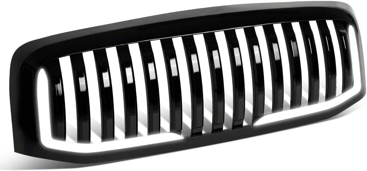 Badgeless. Revamp your 2006-2009 Dodge RAM 2500 with the Vertical Fence Style Upper Replacement Grille. This grille stands out with its sleek, badgeless vertical fence design, paired with a gloss black finish that exudes sophistication. Beyond aesthetics, the integrated dual LED daytime running light enhances visibility and adds a modern touch to your truck's front end.