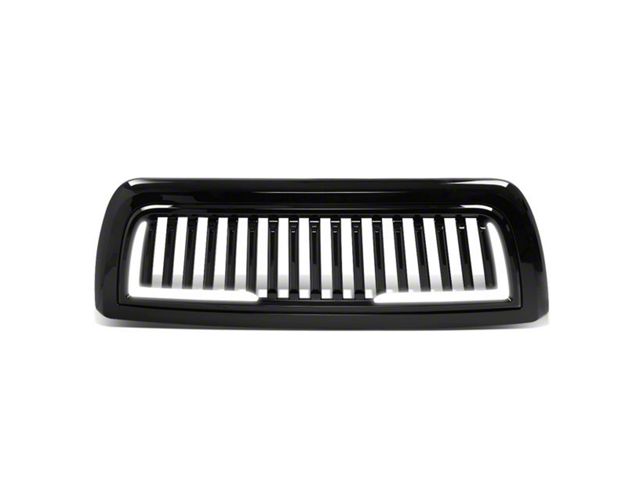 Stylish and Durable Grille. The Vertical Fence Style Upper Replacement Grille with LED DRL Light in Gloss Black offers a sleek and robust design upgrade for your RAM 2500. It provides reliable on and off-road protection while enhancing the vehicle's overall appearance, ensuring both functionality and style.