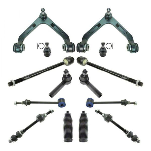 Updated Steering System. The 14-Piece Steering and Suspension System is a complete collection of components designed to restore and improve your vehicle's handling and stability. This kit comprises all of the important steering and suspension system components, such as ball joints, tie rod ends, sway bar links, and control arms. Each component is constructed of high-quality aluminum materials and extensively tested to verify that it meets or exceeds Original requirements. As a result, the kit delivers excellent performance, longevity, and dependability, allowing you to drive with confidence.