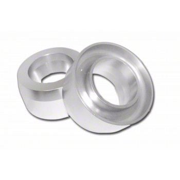 Construction and Appearance. Featuring a polished silver finish, the spacers are crafted to offer both visual appeal and long-lasting performance. The corrosion-resistant coating helps protect against road salts, debris, and moisture, while the robust design ensures strength and stability under regular driving conditions. These spacers blend easily with the factory suspension components, offering a clean, integrated look once installed.